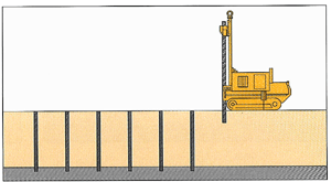 特殊な攪拌翼で掘削しながら固化材を注入しパイル状に固化する工法です。